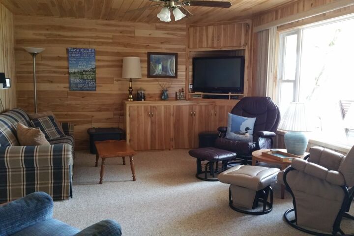 Completely remodeled inside and out. Large flat screen TV, glass top stove, large deck and picnic table, ceiling fans in every room and open floor plan with large windows. Very spacious with a great view over looking the lake.
